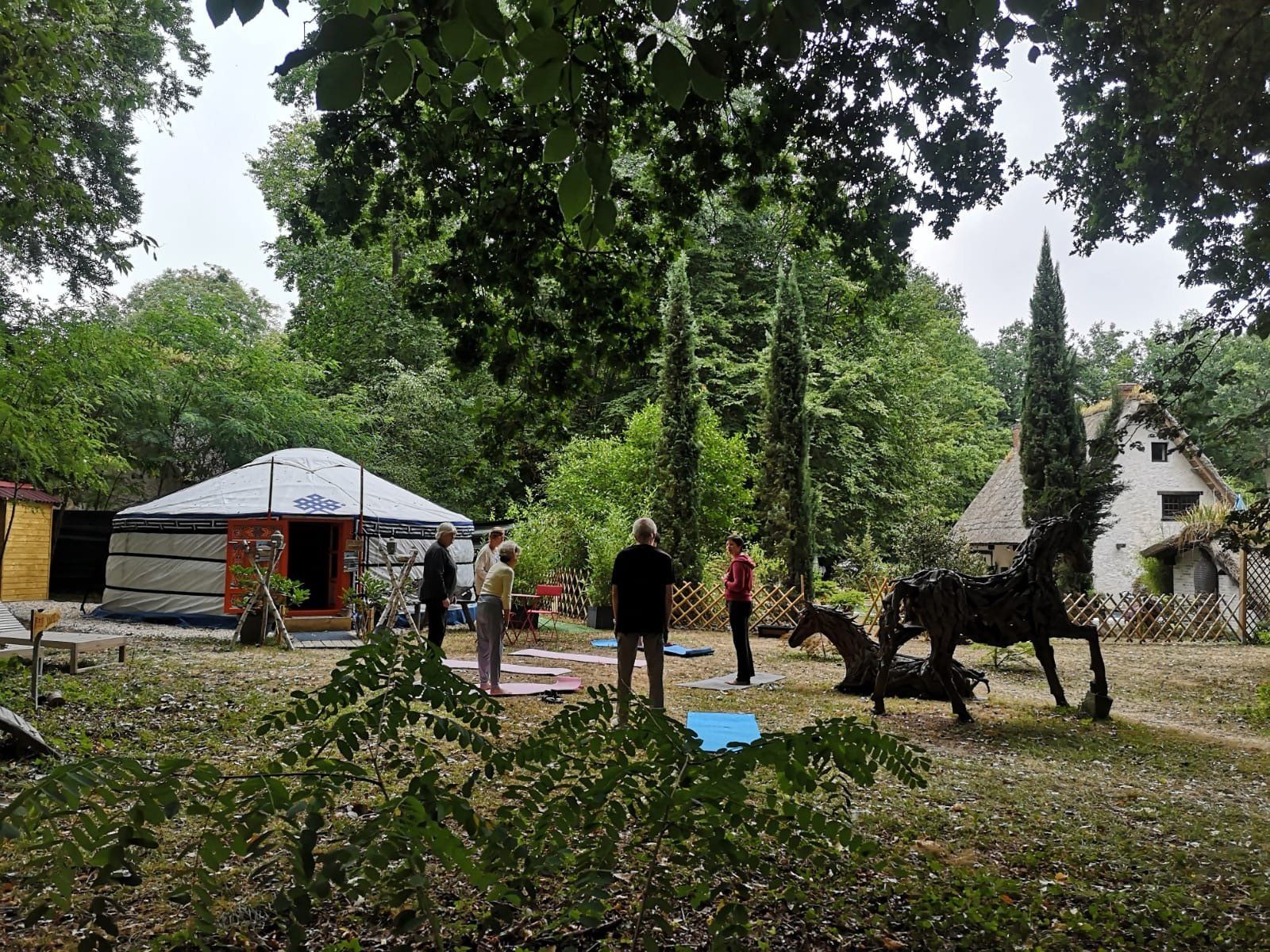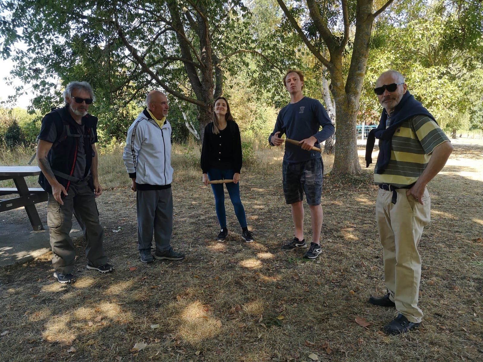 Therapeutic Qiqong at the edge of the pond of Pacy sur Eure. Great moment of happiness and muscular awakening amplified by the taiji bang, qiqong longevity stick.